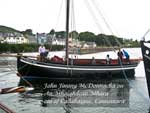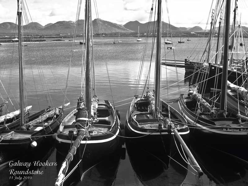 16 July: The Galway Hookerwas always the workboat of the west of Ireland, particularly around Connemara and the Aran Islands where it carried turf mostly in the nineteenth century, between Connemara where there was an abundance of bogs which yielded a more or less endless supply of turf, and the three Aran Islands (Inis Moir, Inis Meain and Inis Oirr) where they had no turf at all, and nothing in fact to keep winter fires burning. The Galway hookers also carried seaweed and other cargo between west of Ireland villages and they were even known to transport poitin, the illicit Irish brew, which warmed the hearts of many's a man (and woman too) during long winter evenings. The Galway Hookers weighed from 11 to 16 tons, were up to 44 feet long and they were renowned for their weatherly qualities. Most were open boats though some of the bigger ones were half-decked with varying degrees of 'tumblehome' on their black hulls. They were usually crewed by two men and working conditions were harsh indeed. By 1970, however, only two were left but a revival began soon after and several are now back in service, though they rarely carry turf or cargo now (except for ceremonial purposes). The interest now is in racing and there are several regattas around Galway each year; the biggest one is in Kinvarra in August. Roundstone also has an annual regatta; one was held there last weekend on the 10th July and the boats sail from there again on the 17th July for another regatta nearby. There appears to have been a rich tradition of song and poetry associated with the hookers, though the songs might have been in the Irish tradition of sean-nos singing, which is very unlike the shanties of the big sailing ships that plied the Atlantic around the same time. See www.galwayhookerassociation.ie for further details.
