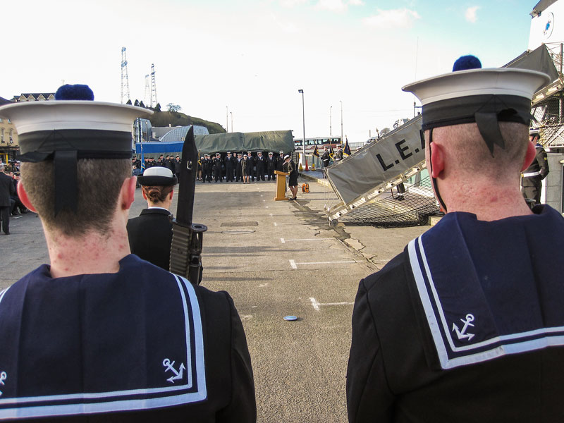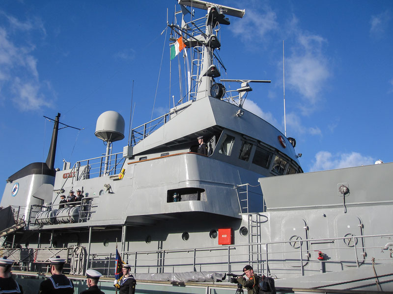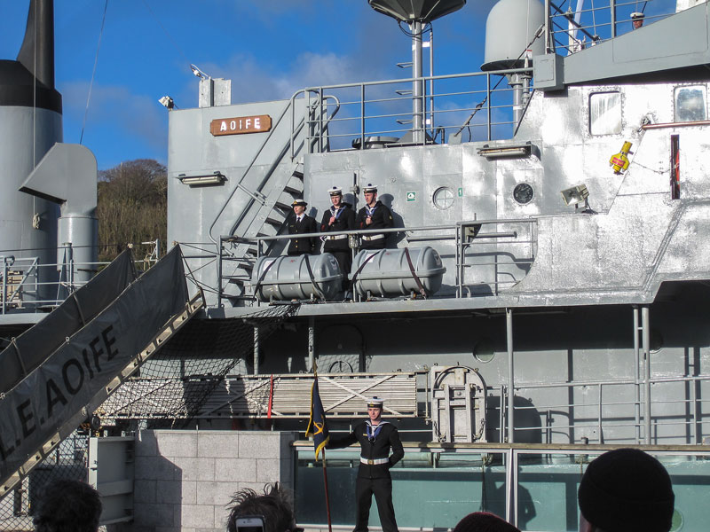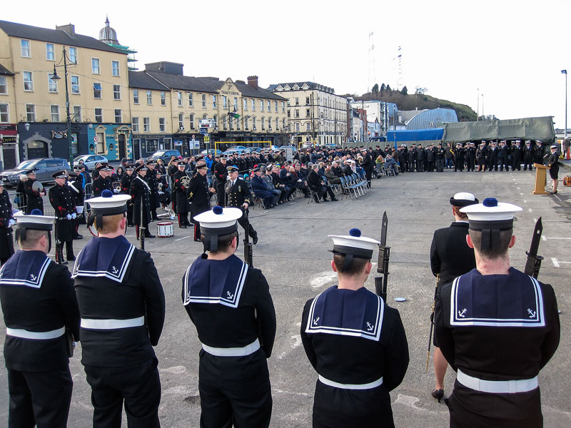 The Irish Naval vessel, the LE Aoife, was officially decomissioned in Waterford on Saturday 31st January 2015 by Paul Kehoe TD, The Minister of State at the Department of Defence, in the presence of local dignitaries, Navy personnel, the Army Band and local people. She was a warhorse of the seas around Ireland, where she served with some distinction for 35 years, although she didn't look a day of it as she was in tip-top condition for the occasion.