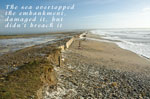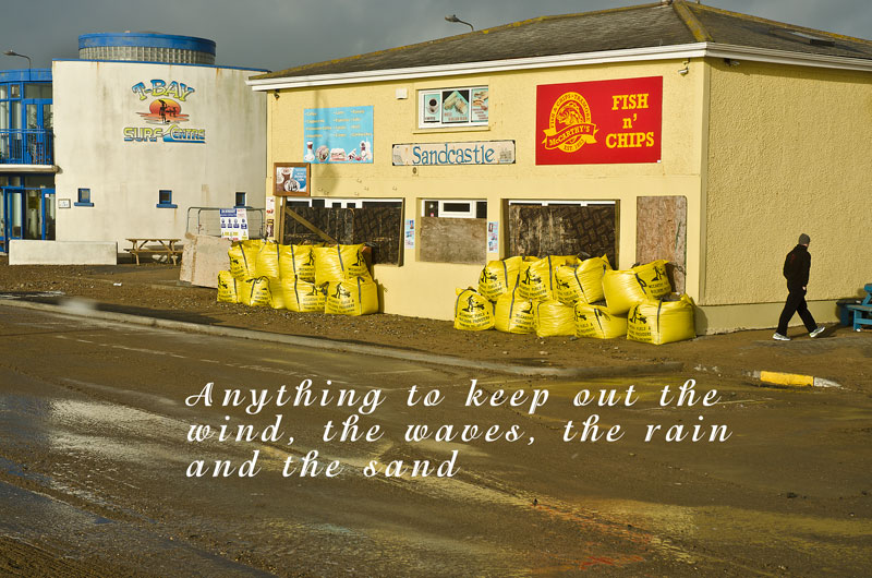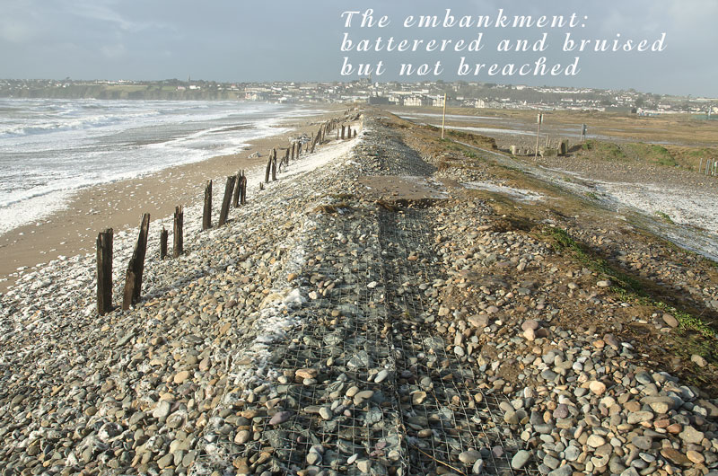 7th Jan 2014: The country has been ravaged by storms, high tides, low pressure systems rolling in from the Atlantic, heavy rains and powerful seas over the last few weeks, and this lethal combination of factors has led to terrible damage along the coastline and much hardship for coastal communities, especially along the south and west coast of Ireland. There has been widespread flooding and damage to infrastructure and property. Waterford too has been badly hit and especially Tramore, which seems to have suffered greatly. As the weather begins to calm down a bit, the damage is there now for all to see. High seas pounded the seawalls and defensive embankments all along the Tramore seafront leading to much scouring of the 'soft' areas and considerable damage to the 'hard' structures (for example, a massive hole was gouged in the road at the western end of the Prom). Hard times indeed.