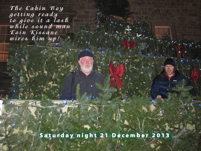 We gave our last performance of the year on the Christmas tree, between Bishop's Palace and Christ Church Cathedral at 7.30 pm, on what was a raw and bitter night and we really have to thank the audience for coming out to hear us sing and for enduring the conditions for so long. Thanks too to Jack Stephenson for all his organising, not just us, but all the groups that have performed here over the last two weeks and more. And Eoin Kissane was great on sound too tonight.