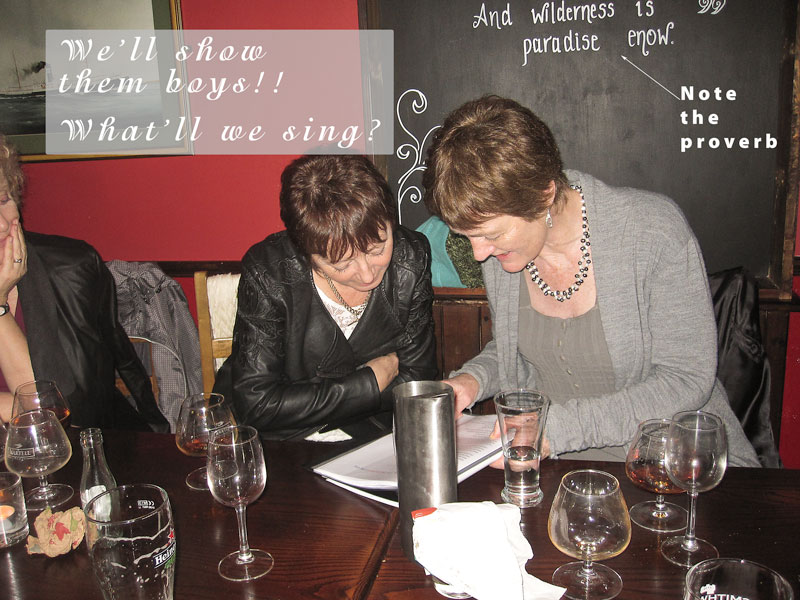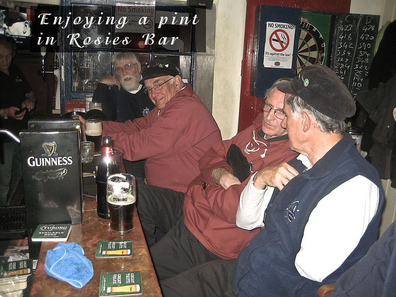 We adjurned then to the warmth and comfort of the Munster Bar just down the road where we dined and drank and sang until the wee hours. A very relaxing night was had by all in our own company, and none better either. We toasted too our absent friends, those departed