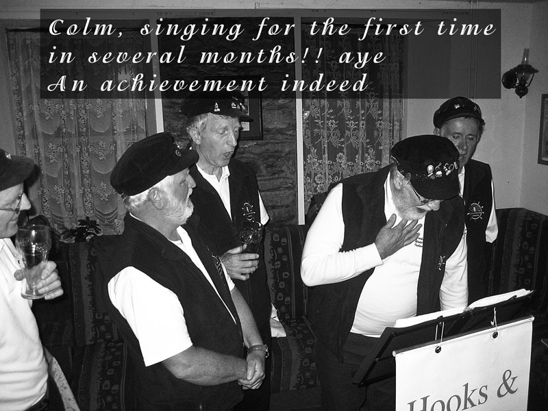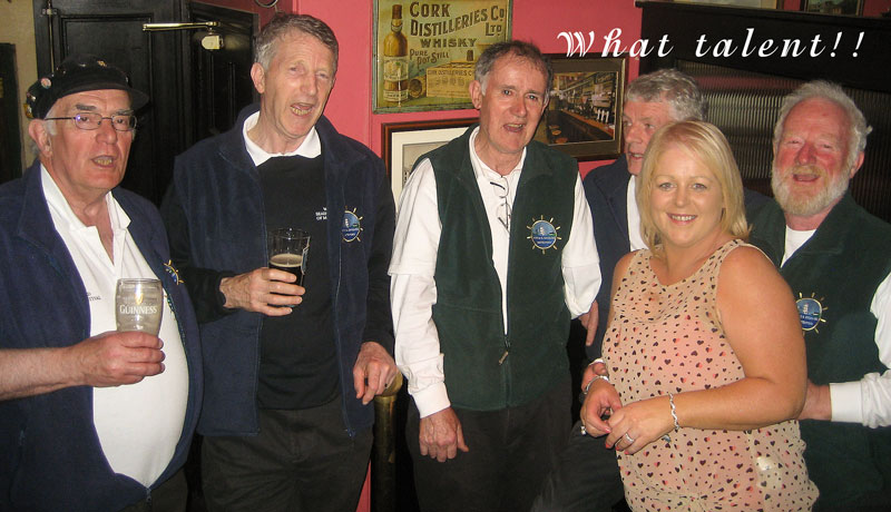 The Waterpark 5 gathered on Saturday 14th September at 10pm in Waterpark Rugby Club where we sang a few shanties, drank a few pints and then the Waterpark 4 sang a few ballads for the Campervan Rally, which was based there over the weekend. It also served as a good warm up for the following day, especially for hilbilly Joe, and he only just after getting off the plane from Nashville to sing onstage in Waterford (what a life!!). We also enjoyed listening to the other musicians, (including very musical priests!) so it was a good night in good company (as usual).