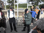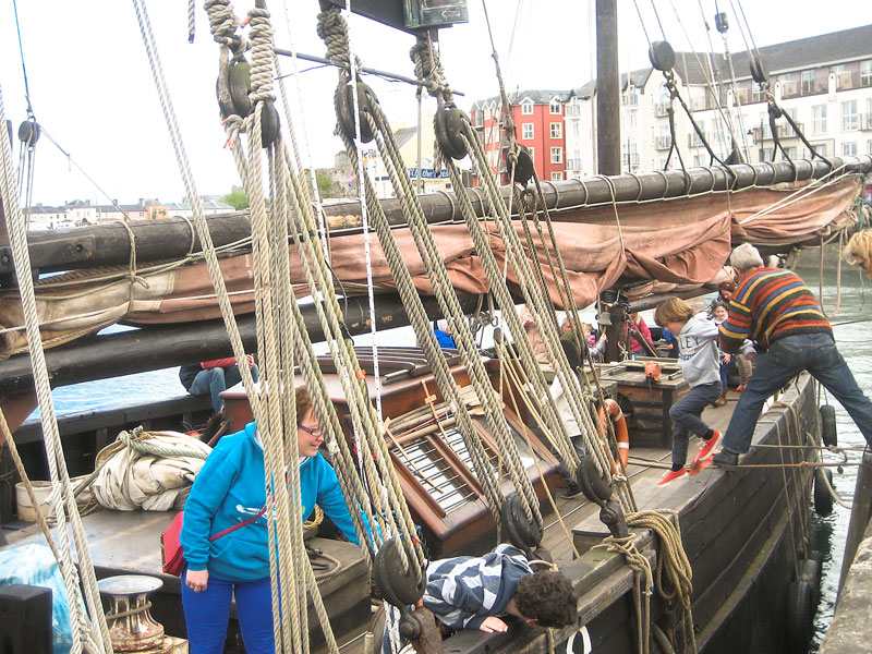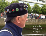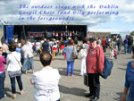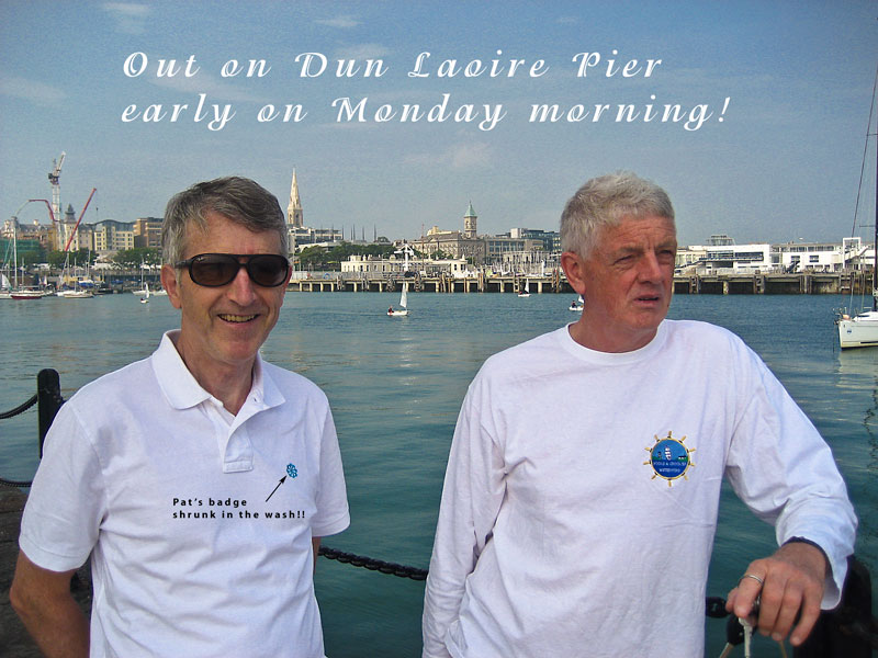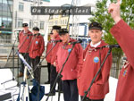 22 July: 1,693 Irish dancers (including some members of the Riverdance troupe) successfully entered the Guinness Book of Records for the largest number of dancers to perform at any one time. All this took place on Sunday 21st July close to the Samuel Beckett Bridge on the River Liffey. Large crowds were gathered to watch the event and Hooks and Crookes had a quick look as they passed by on their way to sing near the Jeanie Johnston Tall Ship soon after. We had driven up from Waterford on the morning for the performance beside the mighty ship. We were preceded by Eight Bells and Comhaltas na Mara from Sligo and Garland from Cork and we were followed by that redoubtable singer of sea songs, Jim Corr. We delivered a powerful set in our now customary style. Our only hiccup was Joe trying to sing in what only can be described as a heavenly key (it was so high!). After lunch we dispersed, some to the Natural History Museum (and other notable Dublin establishments!), some to the cot and someone else to God only knows where. We regrouped for grub and grog in the Purty kitchen (and a few songs). After some more grog in Dun Laoire we retired for the night to our base, the Kingston Hotel. Some departed early on Monday morning while the more relaxed crew members enjoyed a leisurely stroll on Dun Laoire pier in warm sunshine before heading home. Aye