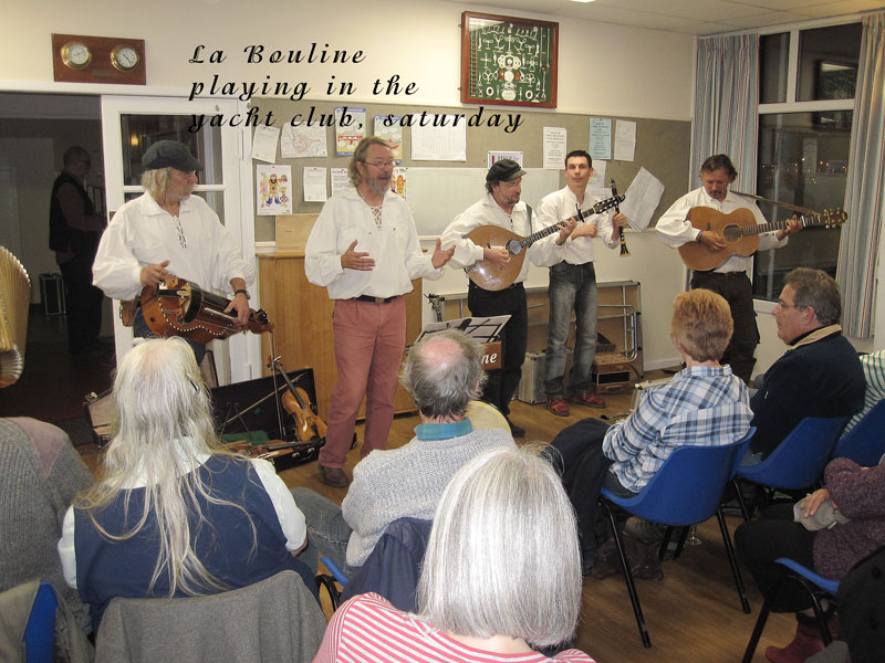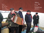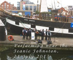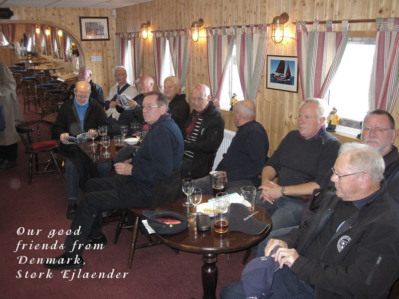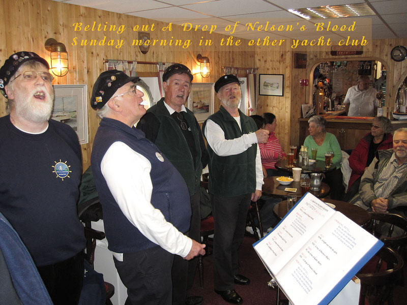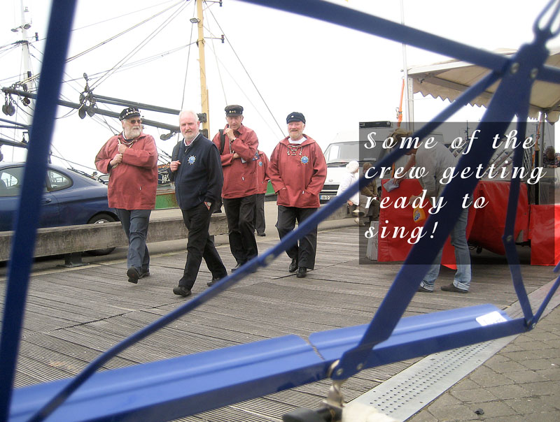 We had a very restful night on Saturday after the customary few pints, and were once again up bright and early the following morning (some of us even went to Sunday service!). Our first gig was in the other Yacht Club (and old converted barge and a lovely space it was too), where we were joined by our good friends from Stork Ejlaender from Fano in Denmark. The final gig in the Crown Post restaurant was memorable: it was an intimate venue, we had a very appreciative audience (as indeed we had at all our gigs) and the grateful landlady kindly offered us a drop of grog. The final event of the Festival was the gathering of all the groups on the Ha'penny Pier, where each group sang a shanty each to the crowds below the old lightship.