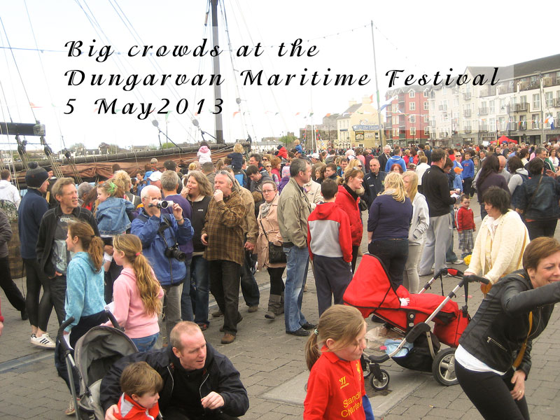 6 May: The inaugural Dungarvan Maritime Festival was held over the weekend and it was a superb weekend of fun, frolics and music. The Festival was blessed with good weather and the crowds turned out in style. HOOKS and CROOKES sang there on Sunday 5th May. We performed first onstage at 4pm which was followed on the quayside opposite by an enactment of activities that took place there many years ago. We then sang again to a diminishing crowd (unfortunately the clouds rolled in and the wind strengthened). Grub and grog followed in the Moorings Bar and when we had had our fill we rambled around 4 or 5 pubs singing a few songs in each and having the crack with ourselves and the revellers (the pubs were buzzing!). The redoutable Dick Miles followed us as we went and sang his few songs after we performed. We ended our night in the Yacht Club where we sang two more songs to great applause before leaving for Waterford just before 12 midnight. A great day indeed. More details of the Festival at Dungarvan Maritime Festival 2013.