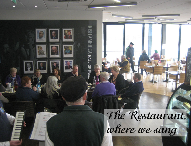 We sang there on Sunday 3rd March in the restaurant upstairs (which has commanding views of the Dunbrody and the river Barrow), down in the entrance foyer (where a French group were delighted with our rendition of two French shanties) and we sang a song onboard ship to entertain one of the guided tours. Altogether a wonderful way to spend a Sunday afternoon and a great opportunity to showcase shanties on such a stage. It is a fantastic resource to visit and to learn about the hardships endured by the emigrants and indeed how safe the original Dunbrody was. Highly recommended!