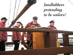 13 June: The photograph below shows Ann Christin, Anne Brit and Ann Kate, some of our good friends from the Norwegian shanty group, Riggerloftets, on their way to the Llangesund International Shanty Festival last weekend, which they thoroughly enjoyed, by all accounts.
