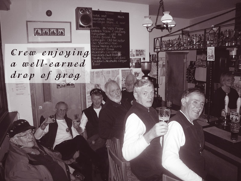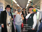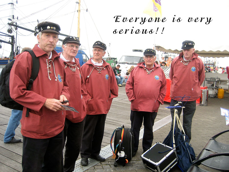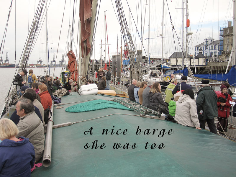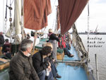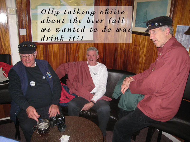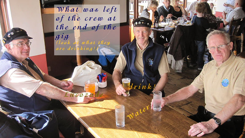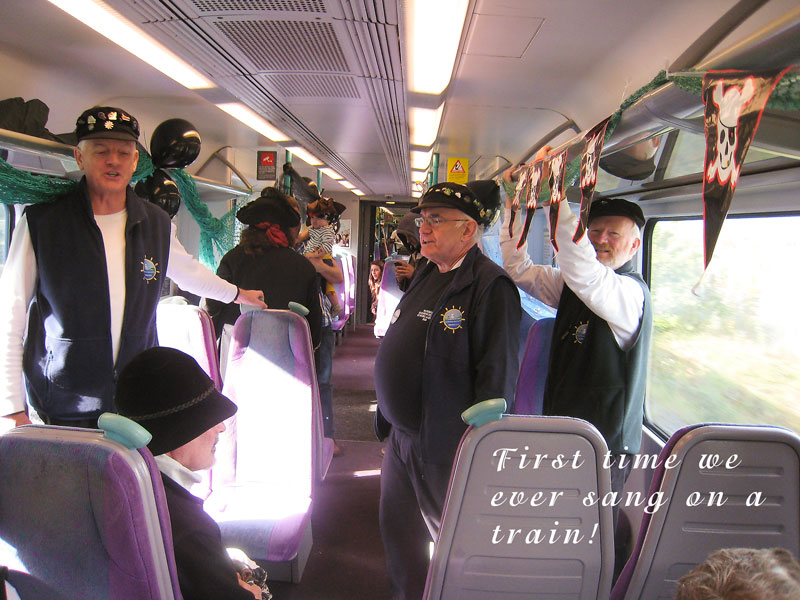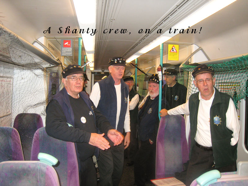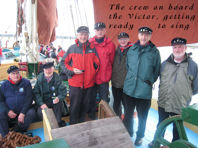 For our final event of Voyage 9, we were delighted to be invited to Harwich in southeast England, where a fine gathering of shantymen entertained the people in several establishments, onshore and offshore. We flew to Stanstead Airport from Dublin and arrived in Harwich to a fine meal prepared by our hosts. We were delighted to relax on the Friday night and enjoy the local ales before retiring to our bunks. Sleep didn't come easy what with snoring, belching, trips to the loo...oh mother of God, Bob Dylan was right: it was a hard days night. We were up bright and early the following morning and following a hearty breakfast, off we went and sang on a train. Yes we sang on a train, for the first time ever, and it was a wonderful experience. We followed that with a performance on the outward and return journey on the Victor, an old grain barge now in use as a pleasure craft ferrying tourists around the harbour. A concert in the Yacht Club was enjoyed by all later on that evening and we were in good company: Crossjack (from Germany), Stork Ejlaender (from Denmark) and La Bouline (from France).