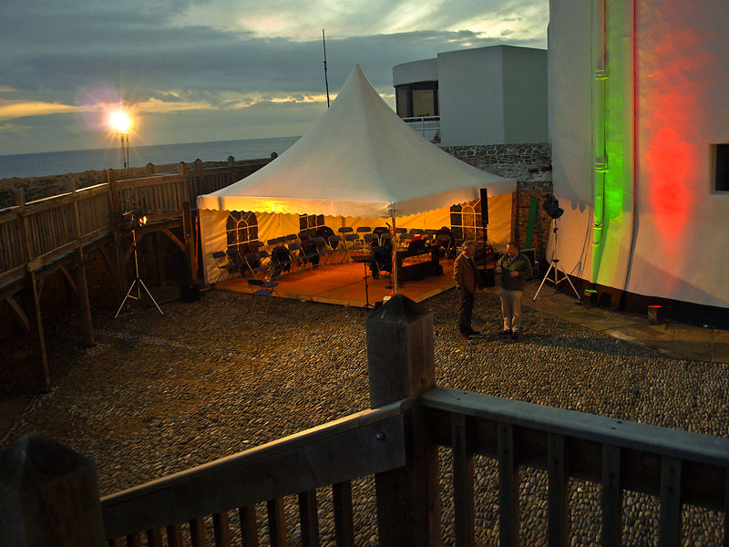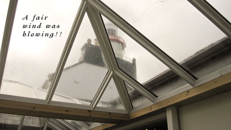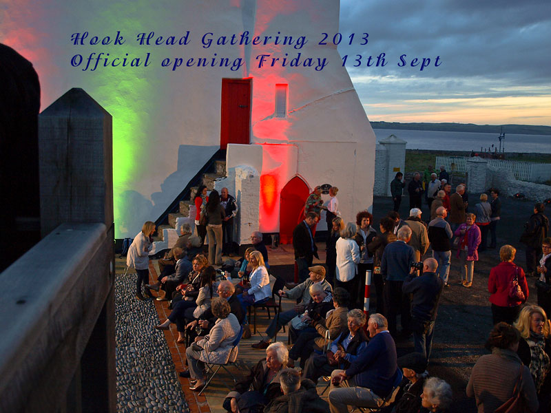 bright and early the following morning for our trip to Hook Head Lighthouse for a Gathering 2013 event of lighthouse keepers (Olly had been at the Hook Lighthouse for the official opening on the Friday night, and what a lovely night it was too). A divil of a gale was blowing so rather than sing in the marquee, we adjourned to the Centre itself and the Hook Head 5 sang some lovely sea songs and shanties to a very attentive and appreciative audience (we always say that, but it is true). We had a lovely lunch then, and rather than sing again to the lighthouse keepers who had departed for a pint up the road, the Templars 4 followed them up and sang a few more shanties up there, but, and its a big but – we only had one small beer between us after our performance.