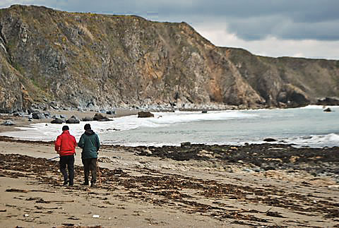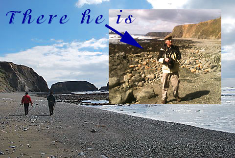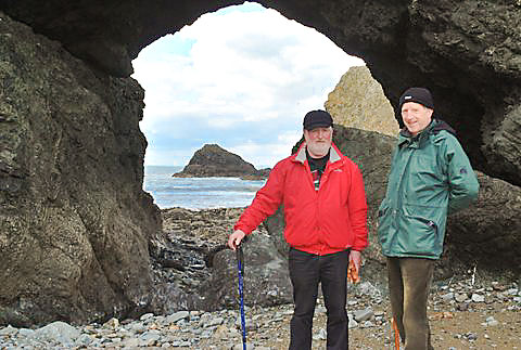 12 April: The temperature has just gone up a few degrees and the sun has finally begun to shine after a long winter when we saw very little of it. That bitter easterly wind too that blew in across Europe from Siberia and hit us hard these last few weeks has finally blew itself out and the mild southerlies have returned. No sooner had its warm breadth touched us when the three old fogies decided to go wandering again along the wild coast of Waterford. And there isn't much wilder than that stretch of coast between Kilfarrasy and Garrarus. So the 3 boys waited for the tide to turn (you have to as otherwise it is inaccessible) and off with them. A lovely day it was too! (by the way, you only see two of the old fogies as the third, the oldest fogie of them all, was taking the pictures). Aye..........APOLOGIES!!! he was being photo'd as he was admiring the cliffscape (see photo 4!)