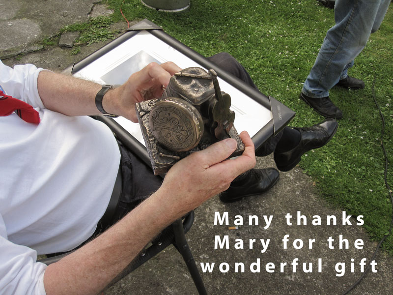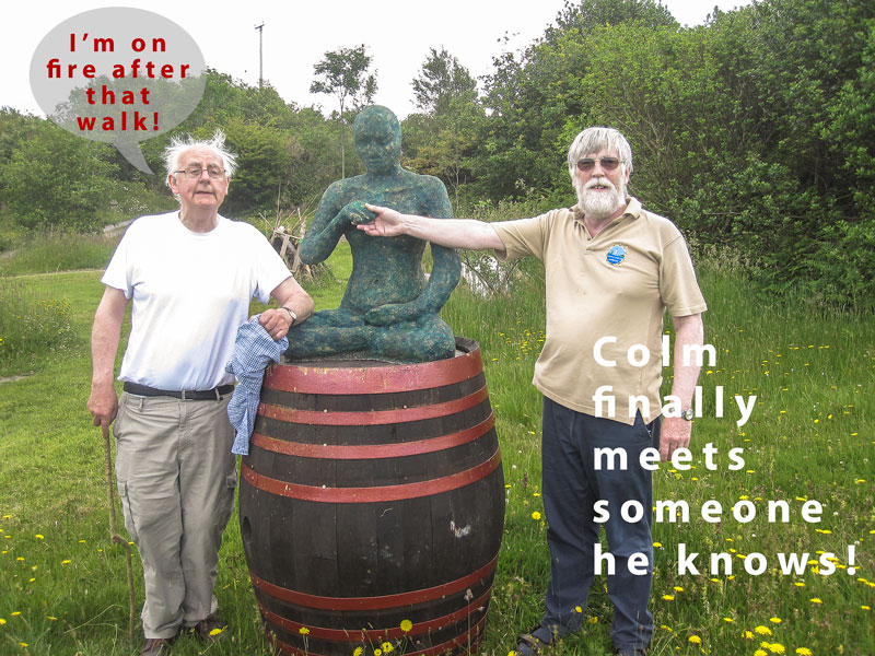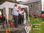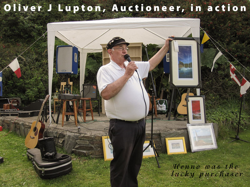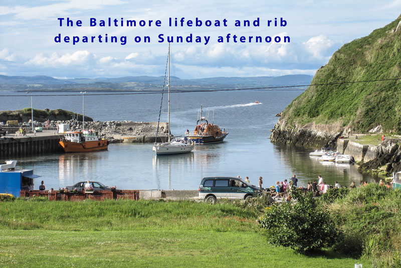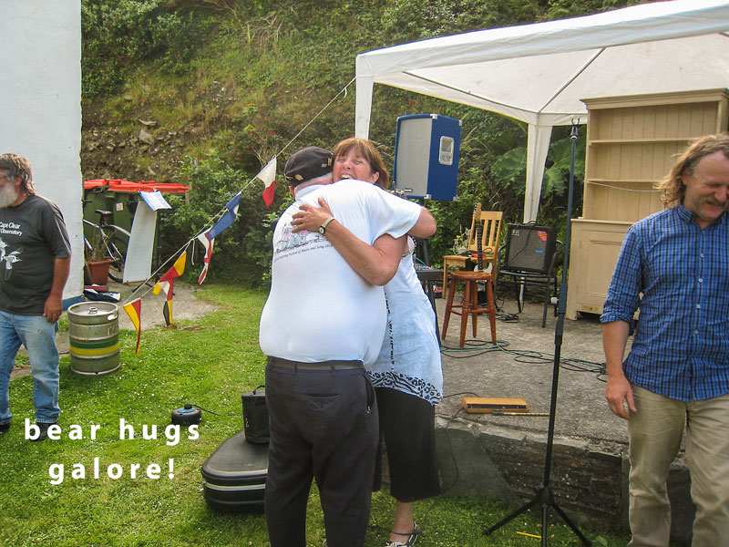 Sunday morning was absolutely glorious, one of those summer days that we look forward too all year and we managed to get to Church to thank the good Lord for what he had delivered to us down in Cape Clear. We had a fantastic breakfast, courtesy of Mary again and as we departed we sang a rousing shanty for Clem, a very fit 93-year old from Cork whose late wife A. Donnelly hailed from Waterford (Daisy Terrace?). Clem is a regular visitor to Cape Clear and looks all the better for it. The afternoon on Sunday was the main event, out in the open space in front of Cotters Bar and several hours of music of all varieties (folk, pop, ballads, bluegrass, and shanties of course) was delivered to the audience, young and old who had gathered for the event. The lifeboat and rib came across from Baltimore and Henno sang a song in dedication to them. A raffle riased more money for the cause and to more or less finish off, Olly kindly agreed to act as auctioneer for some very special items which raised even more money. Mary very kindly presented us with a bronze fine art sculpture from the studios of Jeanne Rynhart for coming all the way down from Waterford to support the event.