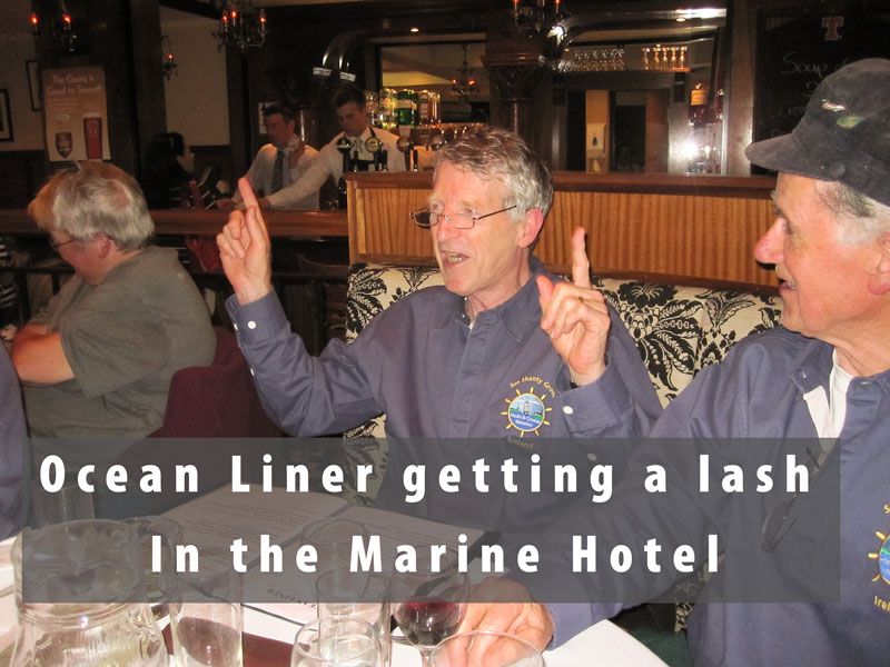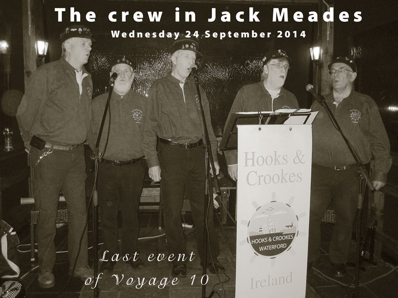 The second annual Rosslare shanty bash took place in the Hotel Rosslare to raise funds for the local maritime museum and five groups sang heartily all evening long beginning at around 6.30. Hooks and Crookes performed for an almost an hour and we just about managed not to sing songs that anyone else sung. We finished off the night too around midnight and our last song, Health to the Company, really went down well and the clink of glasses resounded around the hotel. We retired then to the bar outside, where we were joined by the Molgoggers from Cobh and all present sang a couple of songs each, so it ended up being a late night, followed by an early rise as Joe had to get home to get to Thurles to see his beloved Kilkenny beat Tipp in a very entertaining national league hurling final.