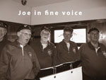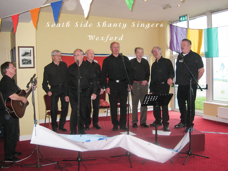 To celebrate the opening of a two day conference on sustainable coastal communities, an informal gathering took place in the Haven Hotel, Dunmore East on wednesday night, the 30th April, giving delegates an opportunity to chat informally, sample the local cuisine and hear a wonderful gathering of musicians from uileann pipers to childrens choirs to raucous shanty singers like ourselves. We sang five songs (time was tight!) on stage, and many more in the pub afterwards, where we were joined by raconteur and former member Frankie Bowe who enthralled everyone with his witty recitations. Joe's new song, Louisitania, was sung twice (has that ever happened before!) such was its appeal to the people in the bar.