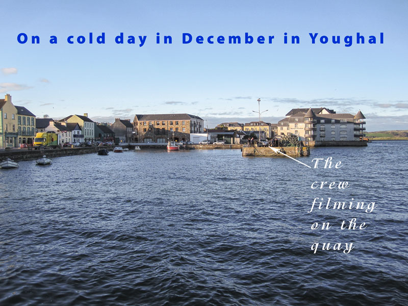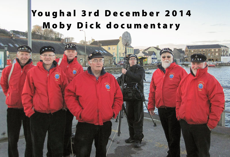 We were asked by Eoin McGarry if we would sing a song or two for a TG4 documentary on the making of the epic film, Moby Dick, some of which was filmed in Youghal in the 1950s. Of course we agreed and enjoyed every minute of our few hours spent in east Cork. It was a glorious day, but cool, and we sang heartily on the quayside for our first event of the new Voyage and indeed our last event for 2014. Joe was outstanding on Heave Away, a song which featured in the original film.