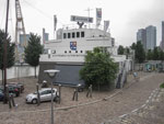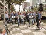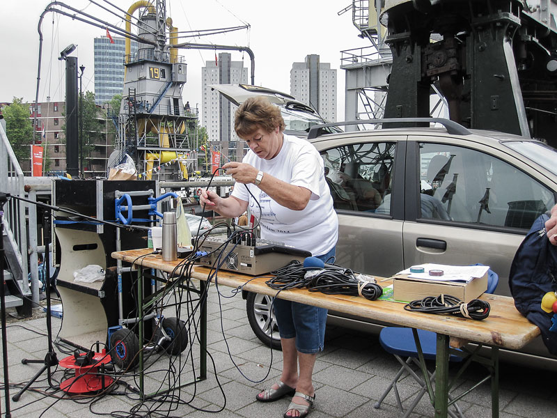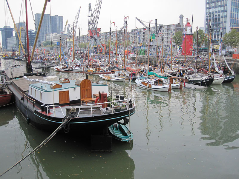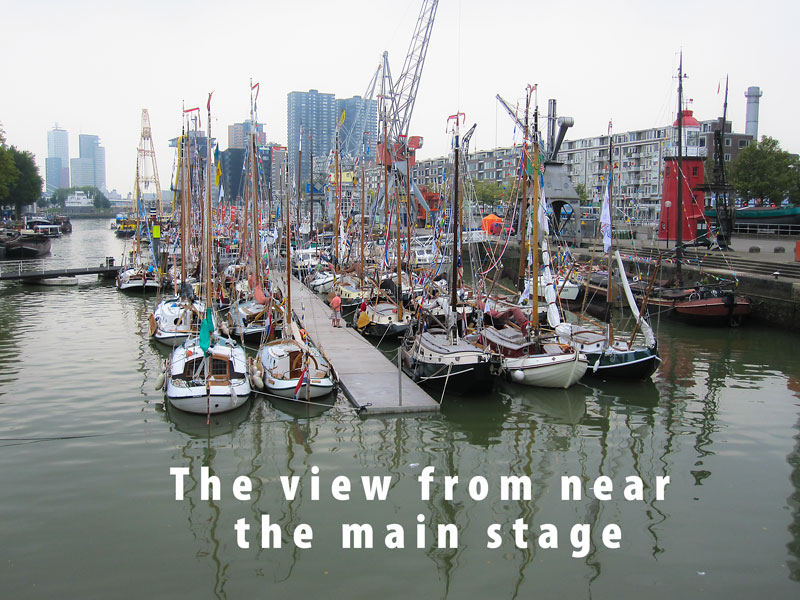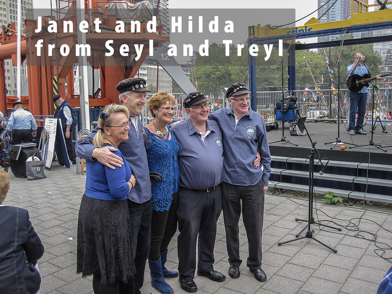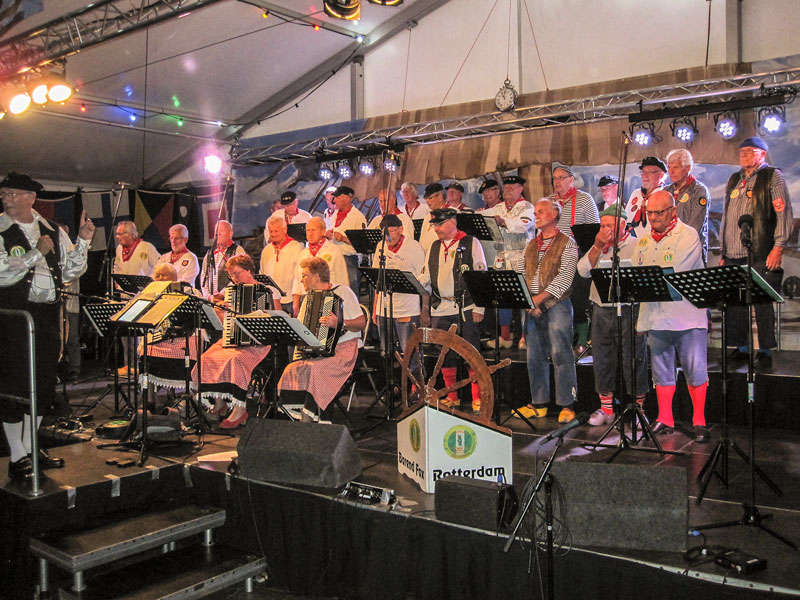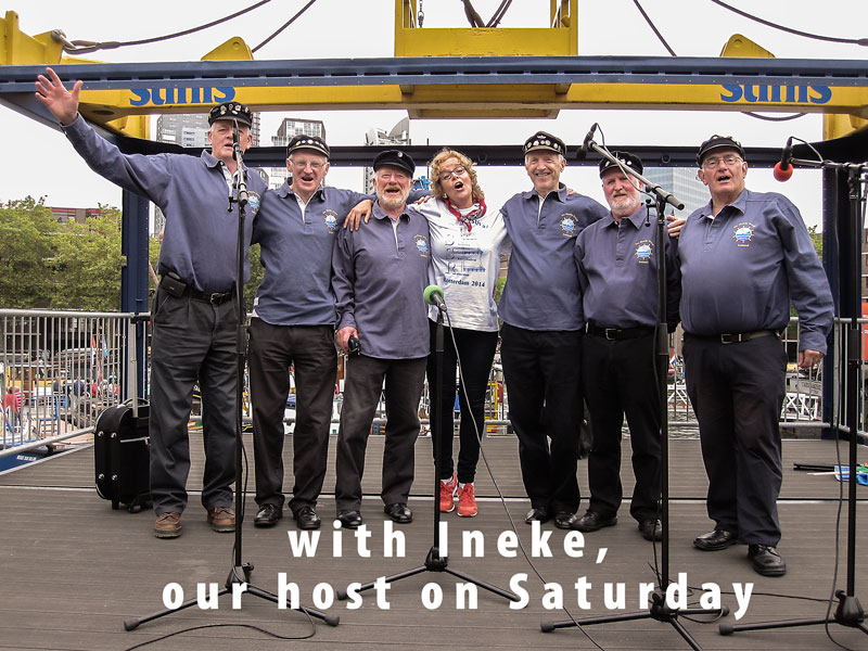 We had an absolutely fantastic time in Rotterdam at this very well organised Shantyfestival and it was worth the travelling to get there to enjoy the people, the place and all the singing. We left Waterford early on Friday morning and flew from Dublin to Schipol Airport in Amsterdam, from where we got a fast train for Rotterdam. We arrived in good time to have a relaxing drink and something to eat before our first performance just before 10 on Friday night in the Tent. This was a great venue both to sing in and also where we were able to hear some of the other groups and engage with fellow singers. We made sure we had a reasonably early night and so we didn't overstretch ourselves on our first night (which we normally do!). After a good nights rest in our floating hotel (another first for us – sleeping on water!), we were up bright and early and we had three more performances during the day and three more again on Sunday at various locations. Ineke looked after us on the Saturday and Frieda did likewise on Sunday, and what a job they had trying to keep us from wandering and becoming too engrossed in all the other activities that were taking place in Rotterdam over the weekend. There were boats and barges of all sizes, all wonderfully decked out, and there were steam engines and cranes, superb model boats and various other stall offering all sorts of the maritime pariphenalia. The Maritime Museum nearby was also a fine attraction. It was great too to meet again with Janet and Hilda and the two Jans from the group Seyl and Treyl.