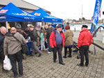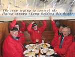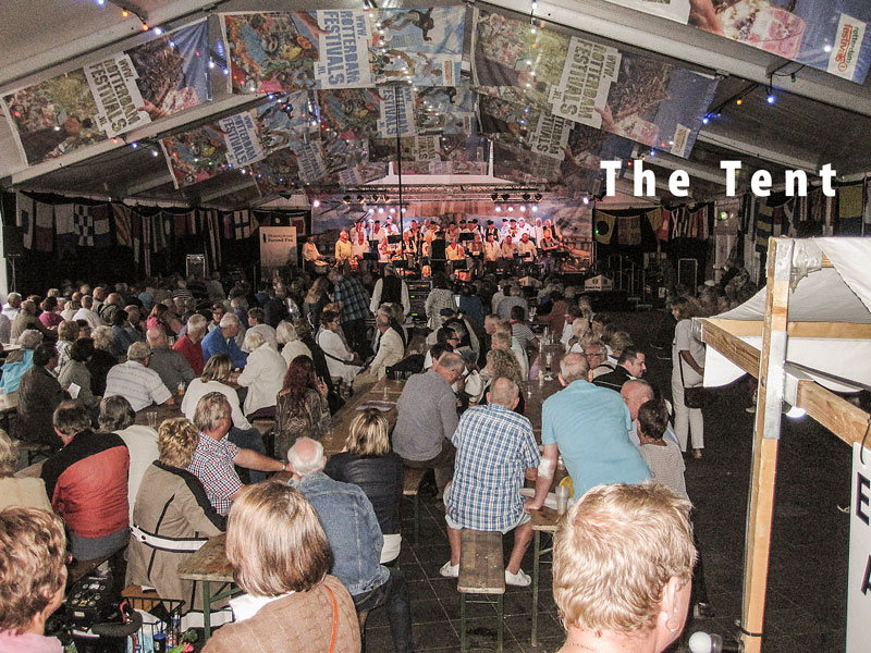 The west Waterford Food Festival has been running for several years and it is always a great event and well supported, and is usually blessed with good weather. We were invited to sing there this year and we had a ball. A notable first for us was that we sang in the rain, heavy rain too but luckily our new coats came in handy and kept us dry, and warm too in the stiff breeze. After that first performance at 2.15 we went walkabout and had a pint, as thirsty singers are liable to do! Back for our second performance at around 3.30 and we unveiled some new songs from our rapidly expanding repertoire, including a world premier of Lusitania, Joe's latest composition. We were told later that the sounds of shanties could nearly be heard all over Dungarvan and everyone around us seemed to enjoy our eclectic mix of sea songs and shanties. A quick pint in the Lady Belle (singing is thirsty work!) and then we retired to the Moorings where we had a fantastic steak (except for Timmy who had fish and chips!). Another pint there to wash down all the food (it is a food festival after all!). The canopy surrounding us didn't like us for some reason and took off, but the able bodied members of the crew were there to save the day! Hearty souls they are too.