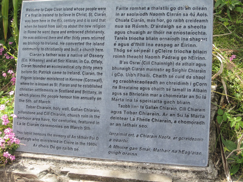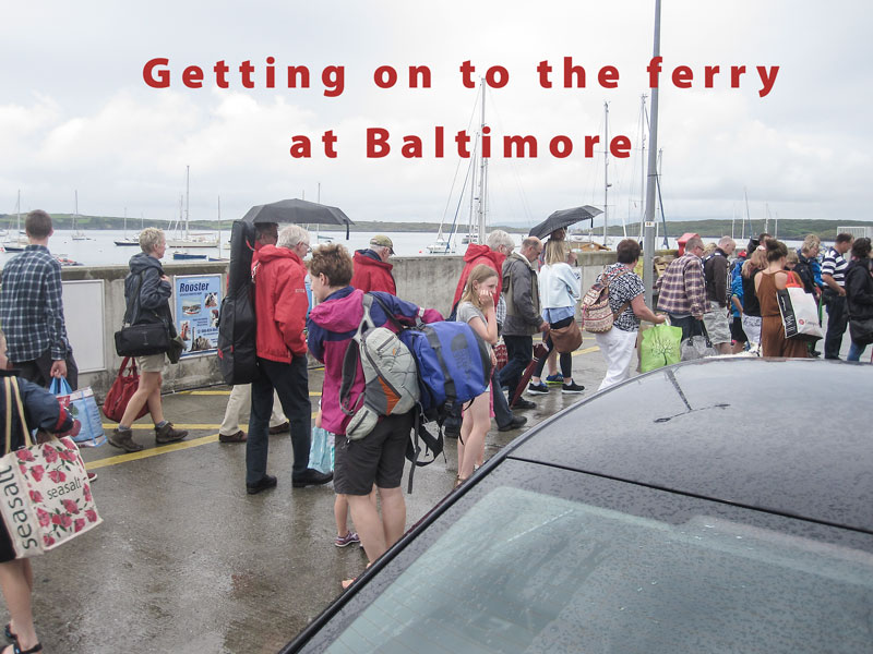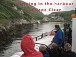 We left Waterford on Saturday the 19th July at 10 o'clock and arrived safely in Baltimore just before the ferry departed, having stopped on the way for tea and scones (yum, yum). Mary was waiting for us but we declined her offer of a lift to the holiday home that Mary let us use for the weekend, preferring the short walk instead. After settling into our accomodation (beside Cotter's Bar), we departed with Ferdia on a bus tour of the Island, which Mary had again organised for us and Ferdia was a very informative guide highlighting all the various features of the Island and aspects of Island life. Ferdia himself came to visit the Island in 1990 and he never went home, such is the attraction of the place.