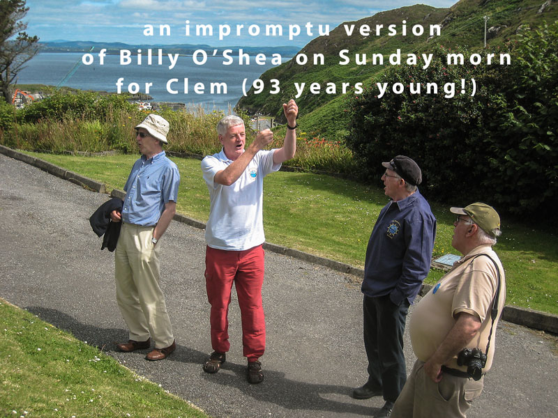 and that was another good session with shanties and ballads and box-playing. Even Clem sang a song and he was word perfect! Father Hickey was very interested in Joe's Lusitania and no doubt that will be emailed to him soon. Fr Hickey had earlier said Mass as gaeilge in the local Church and he is a noted local and national historian.