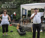 Hooks and Crookes were delighted to be in Kilkieran Cottage near Owning in Pilltown in south Kilkenny on Saturday night 23rd August, to entertain visitors from Newfoundland who come to Ireland every second year as part of an annual Festival that alternates between our green Isle and Newfoundland & Labrador, which helps to maintain the long-standing cultural links between our respective countries. They only arrived here yesterday, 22nd August, and they enjoyed the wonderful Iverk Show today at nearby Pilltown, before retiring to Kilkieran Cottage for food, refreshments and entertainment. It was a wonderful occasion and for us it was even more so. It was the first time we sang in a barn and it was also the first time we enjoyed a Sean O'Casey play between our two performances. That was especially enjoyable and so well performed by a troupe from nearby Carrick-on-Suir. And we sang well too, as usual, despite there being only four of us. It just shows what four willing singers can do in intimate surroundings. After the performances we adjourned to the nearby Cottage where a lovely meal awaited us (and some grog too!). We have to thank Frank and Adie for first of all inviting us and then for the hospitality afforded to us when there. Overall the night was a great success and sure it was only across the river for us. It was also great to sing a few shanties for Kilkenny people!
