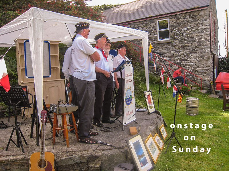 After another early rise on Sunday (and early mass for some of the crew), and a beautiful walk around the Sanctóir, we went again to Ballydehob for a singaround and more opportunities to hear fellow singers and to continue our rapport with Riggerloftets. We performed onstage in the afternoon and then we adjourned to the Sandboat for our last performance, which was a rousing affair. After bidding our farewells to Riggerloftets, we headed for Waterford.