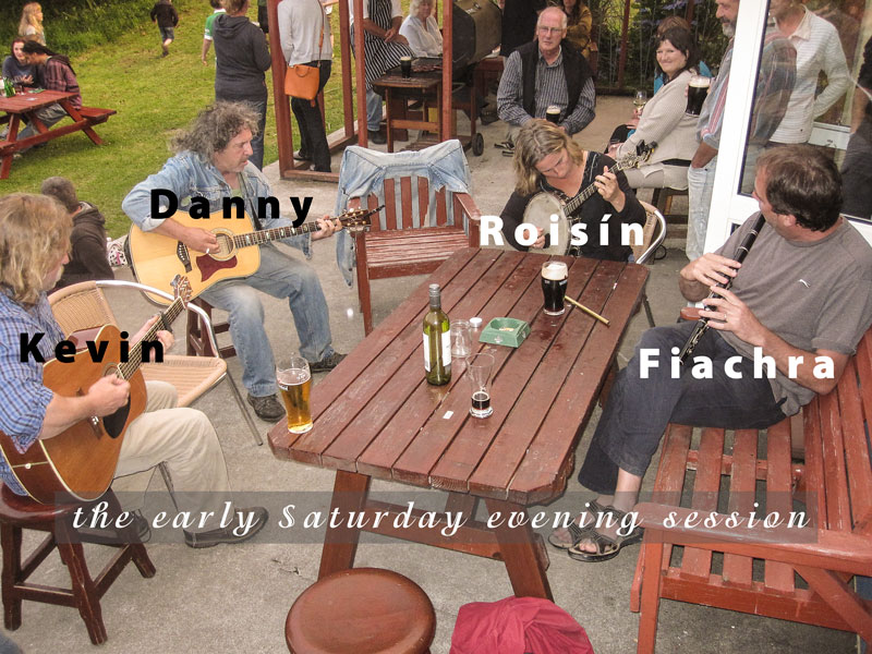 After a pint (maybe two) we warmed up and headed up the road to O'Driscoll's Bar for the BBQ, all proceeds of which were in aid of the RNLI. After the grub, so well prepared for us by Steve and Mary (from Lundy Island), we went outside to sing our shanties since it was such a beautiful night and we stayed outside all night and traded songs and tunes with fellow musicians (Danny, Kevin, Darragh, Fiachra and Roisín and Mary O'Driscoll herself, and there were more contributions from the audience). It was a special night, out under the stars, singing and dancing too, so it was hard to go to the cot let alone sleep when we got there.