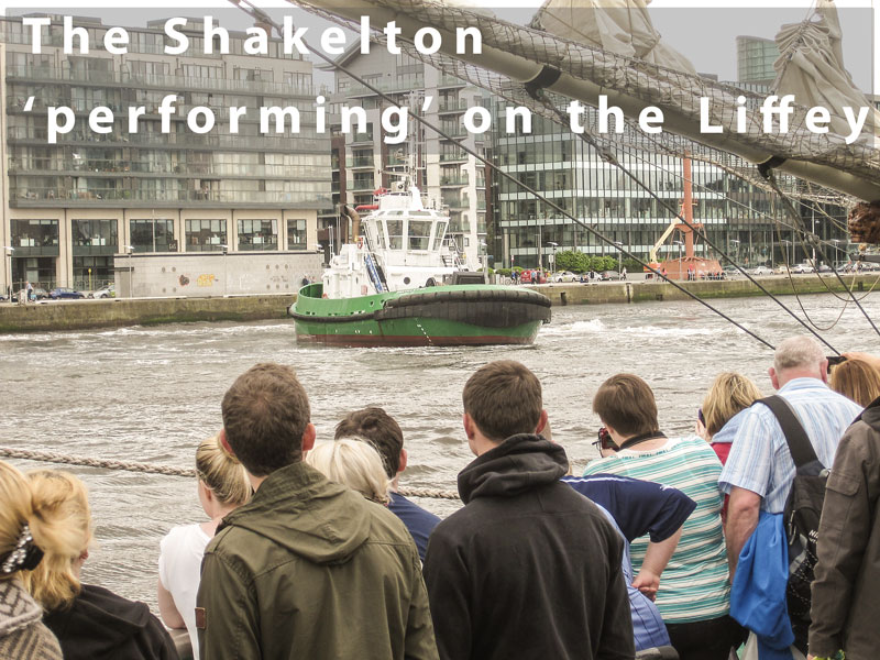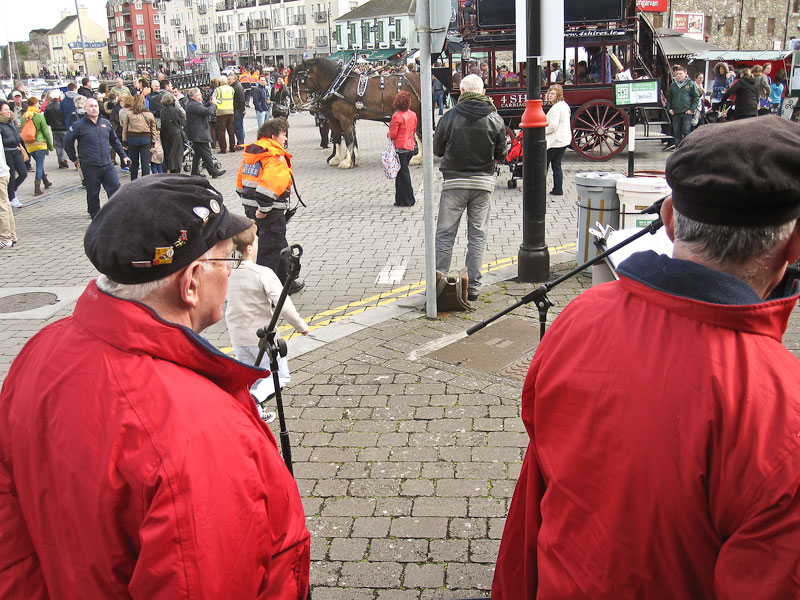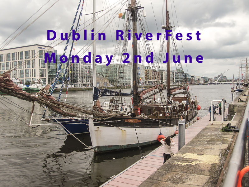 On our way home from Antrim we dropped in to the Dublin RiverFest taking place along the docklands down near the O2 stadium, where we gave only one performance but it was a lively one. We were well practiced after the weekend but the voices were a bit shattered (despite all the weekend lubrication!). Nevertheless, the set we delivered was well recieved. It was a very well attended event too, with several ships, onshore and river activities and very enthusiastic crowds lined and walked the quayside.